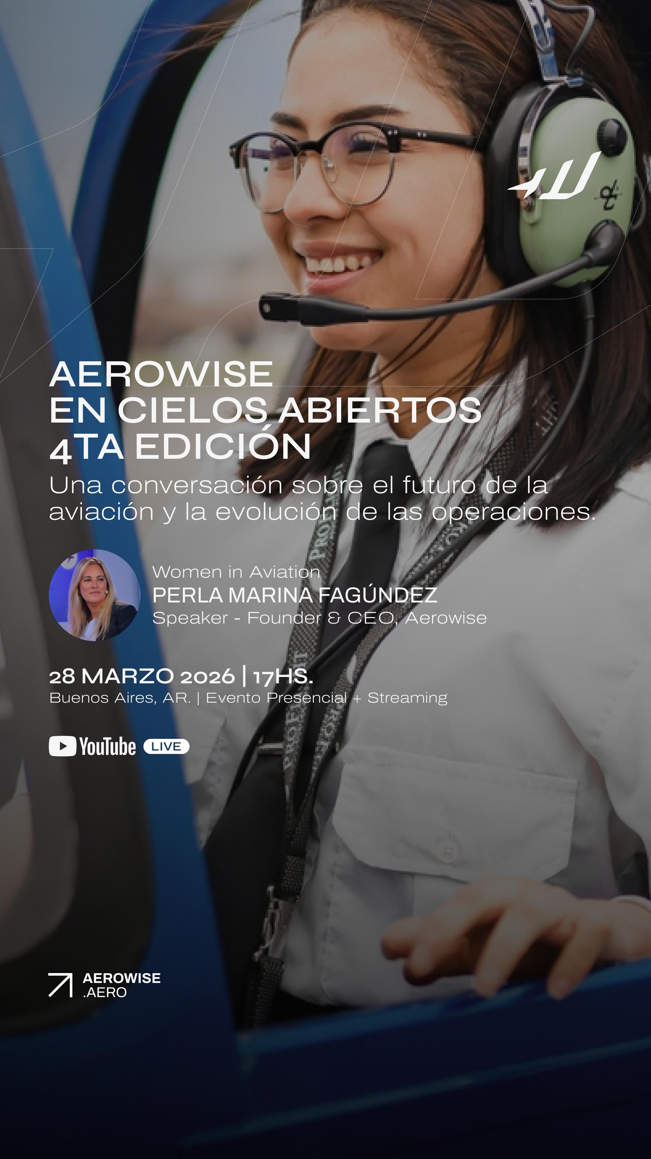 Aerowise will participate in the 4th edition of Cielos Abiertos, an event focused on women in aviation that will take place on March 28 at the ProFlight facilities at Presidente Rivadavia Airport, with both an in-person component and a live stream on YouTube.
